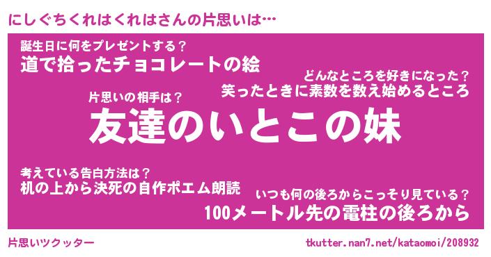| 伝説のあだ名 | 『封印されしスナイパーにしぐちくれはくれは』 |