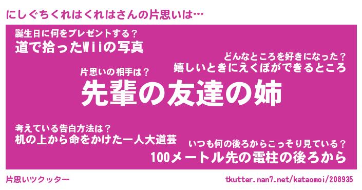 | ツイッター | にしぐちくれはくれはさんのツイッターID『katatsumuri_nyan』 |