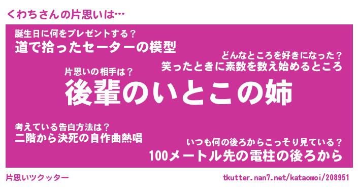 | 意味不明あだ名 | 『ペロリンくわち』『くわちフォーエバー』 |