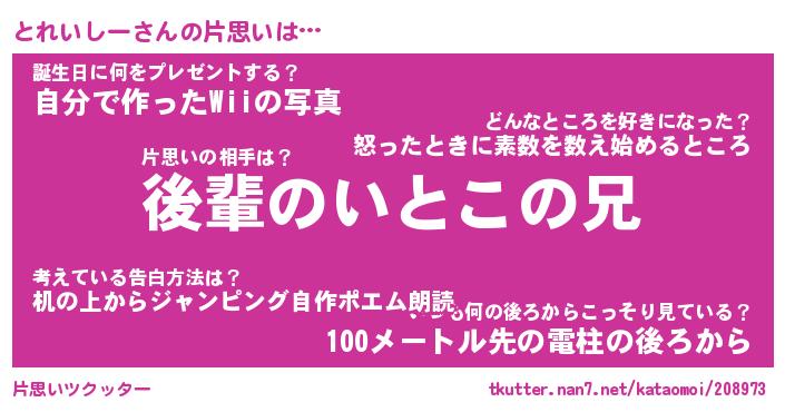 | 胡散臭い通販商品みたいなあだ名 | 『モテモテ間違いなし水晶球…その名も「とれいしー」』 |