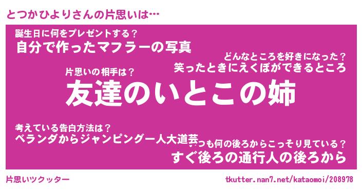 | 恥ずかしいあだ名 | 『プリティーとつかひより』『とつっちょ』 |