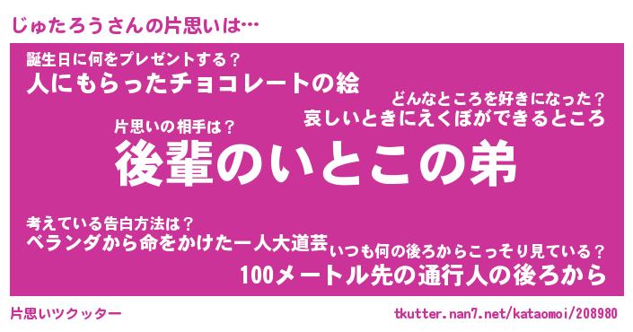 | 胡散臭い通販商品みたいなあだ名 | 『億万長者になれる水晶球…その名も「じゅたろう」』 |