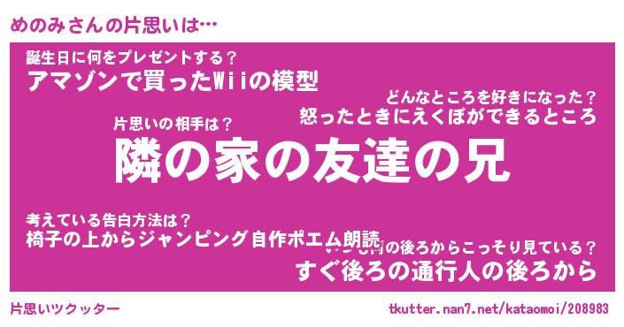 | 胡散臭い通販商品みたいなあだ名 | 『必ず成功する霊験あらたかなお札…その名も「めのみ」』 |