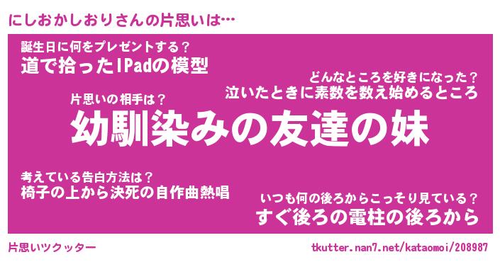 | 肩書あだ名 | 『にしおかしおり御曹司』 |