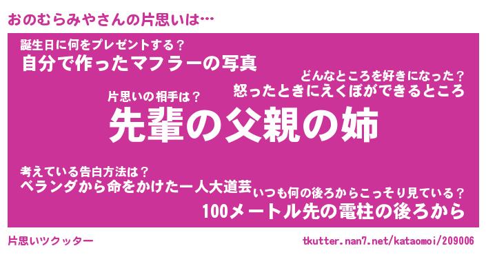 | 男性向けラノベタイトル風あだ名 | 『おのむらみやの憂鬱』 |