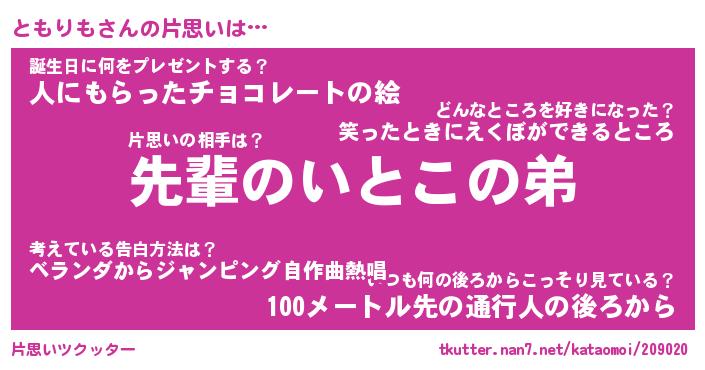 | 意味不明あだ名 | 『ペロリンともりも』『永久保存ともりも』 |
