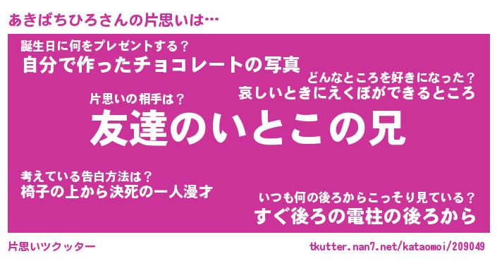| ヒーロー風カッコイイあだ名 | 『スーパーアキバチヒロ』『暗黒騎士アキ』 |