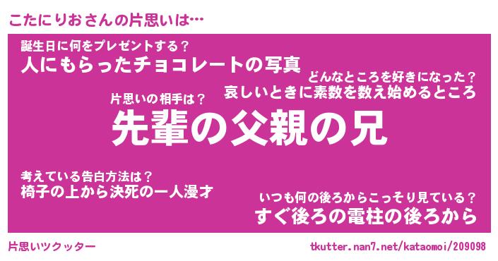 | ヘコむあだ名 | 『こたふぇ~』『豆乳』『こたお』 |