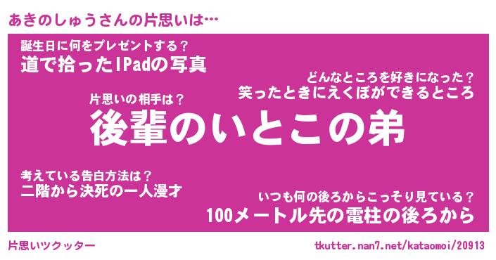 | ヒーロー風カッコイイあだ名 | 『スーパーアキノシュウ』『魔戒騎士アキ』 |
