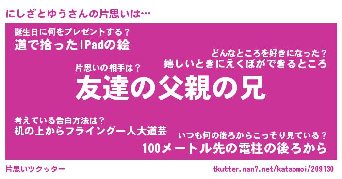 | 胡散臭い通販商品みたいなあだ名 | 『億万長者になれる水晶球…その名も「にしざとゆう」』 |