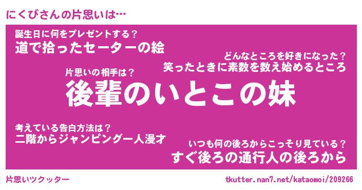 | ヘコむあだ名 | 『にくもー』『豆乳』『にくっちょ』 |