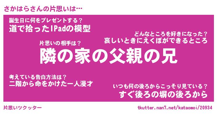 | 胡散臭い通販商品みたいなあだ名 | 『必ず成功するブレスレット…その名も「さかはら」』 |
