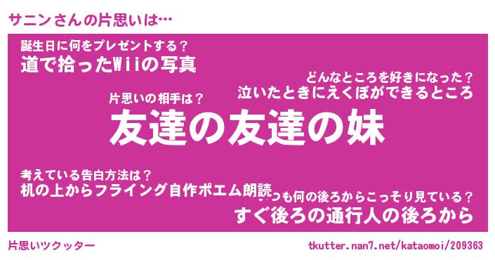 | ヘコむあだ名 | 『サニもー』『豆乳』『サニっぺ』 |