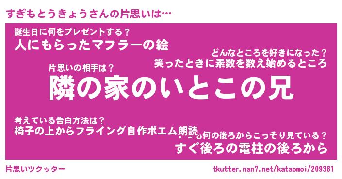 | 男性向けラノベタイトル風あだ名 | 『すぎもとうきょうの憂鬱』 |