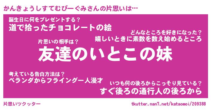 | 胡散臭い通販商品みたいなあだ名 | 『億万長者になれる水晶球…その名も「かんきょうしすてむびーぐみ」』 |