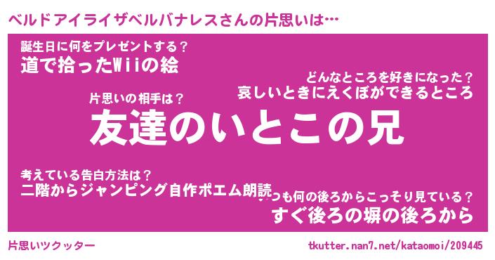 | 胡散臭い通販商品みたいなあだ名 | 『億万長者になれる水晶球…その名も「ベルドアイライザベルバナレス」』 |