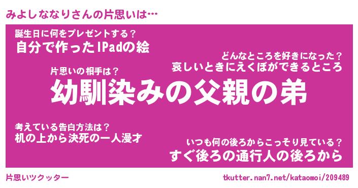 | 肩書あだ名 | 『みよしななりCEO』『みよしななり教頭』 |