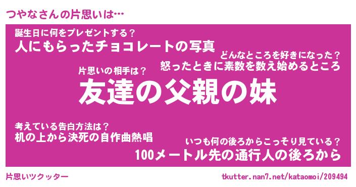 | ヘコむあだ名 | 『つやふぇ~』『酢こんぶ』『つやを』 |