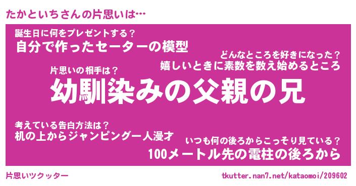 | ファンタジー風あだ名 | 『タカフェル』『エターナルタカトイチー』 |
