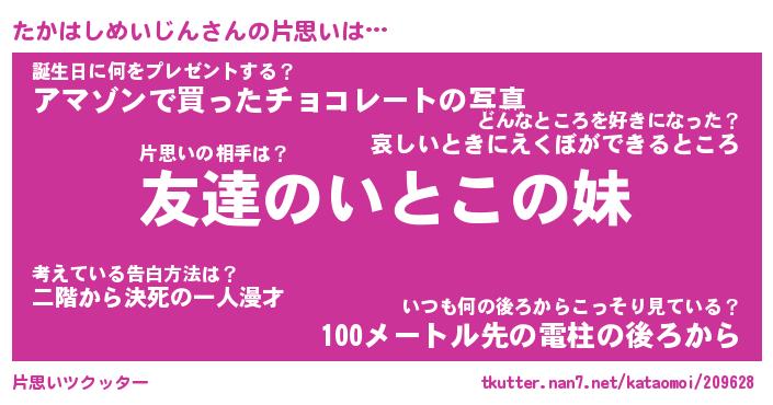 | ヘコむあだ名 | 『たかもー』『なまこ酢』 |