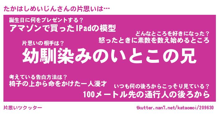 | 男性向けラノベタイトル風あだ名 | 『たかはしめいじんの憂鬱』 |