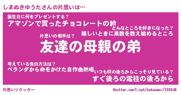 | ヘコむあだ名 | 『しまにー』『なまこ酢』『しま太郎』 |