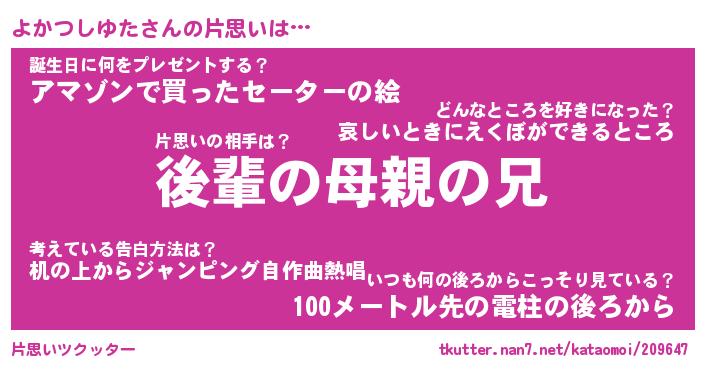| 恥ずかしいあだ名 | 『プリティーよかつしゆた』『よかっちょ』 |
