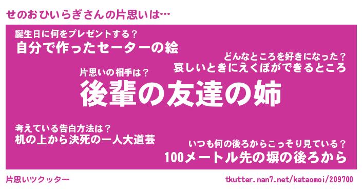 | 伝説のあだ名 | 『封印されしスナイパーせのおひいらぎ』 |