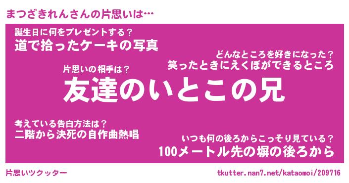 | 胡散臭い通販商品みたいなあだ名 | 『億万長者になれる水晶球…その名も「まつざきれん」』 |