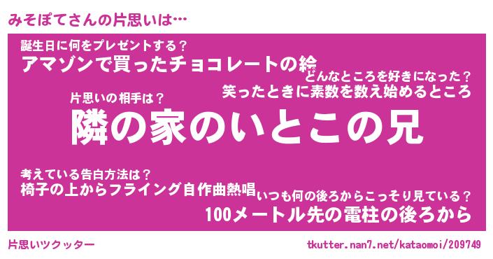 | 胡散臭い通販商品みたいなあだ名 | 『必ず成功する霊験あらたかなお札…その名も「みそぽて」』 |