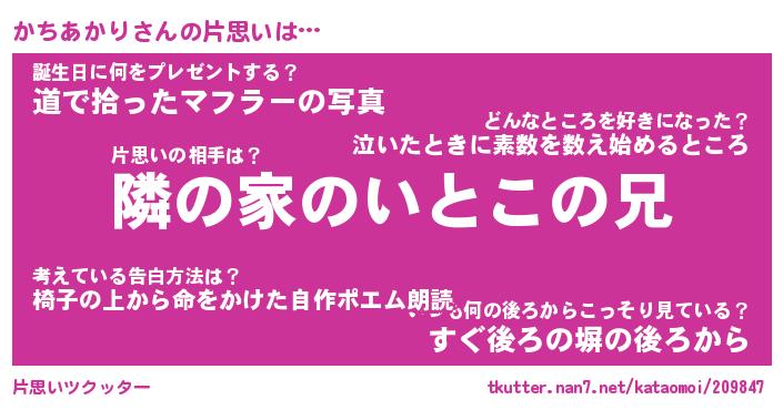 | ヘコむあだ名 | 『かちもー』『豆乳』『かちぷりん』 |
