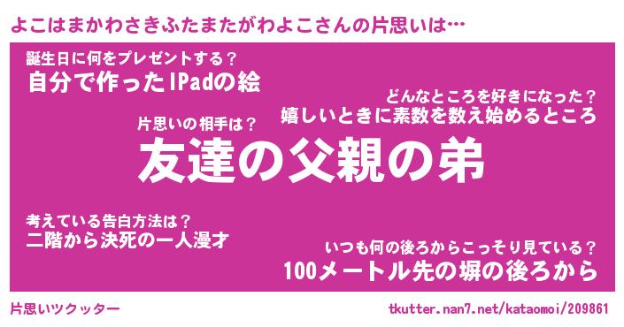 | 胡散臭い通販商品みたいなあだ名 | 『億万長者になれる水晶球…その名も「よこはまかわさきふたまたがわよこ」』 |
