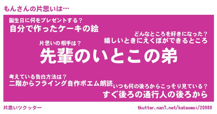 | 2回繰り返すあだ名 | 『もんもん』『ももんん』『うねうね』 |