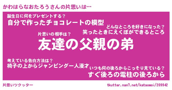 | 胡散臭い通販商品みたいなあだ名 | 『億万長者になれる水晶球…その名も「かわはらなおたろう」』 |