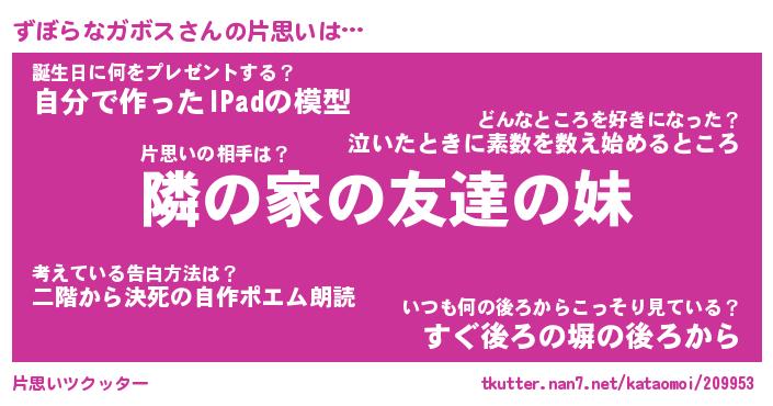| ヘコむあだ名 | 『ずぼっふぃ~』『つくし』 |