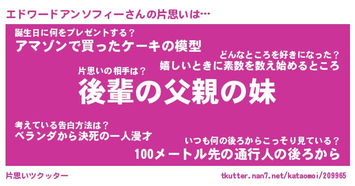 | ツイッター | エドワードアンソフィーさんのツイッターID『dendenmushi_idle』 |