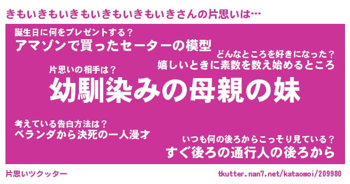 | 女子向けラノベタイトル風あだ名 | 『(仮)きもいきもいきもいきもいきもいきのやんごとなき事情』 |