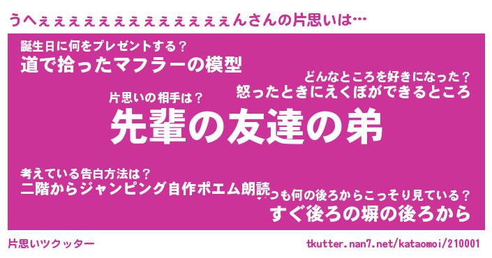| ツイッター | うへぇぇぇぇぇぇぇぇぇぇぇぇぇんさんのツイッターID『katatsumuri_kun』 |