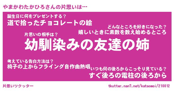 | 男性向けラノベタイトル風あだ名 | 『やまかわたかひろの憂鬱』 |