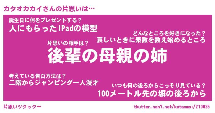 | 男性向けラノベタイトル風あだ名 | 『カタオカカイアートオンライン』 |