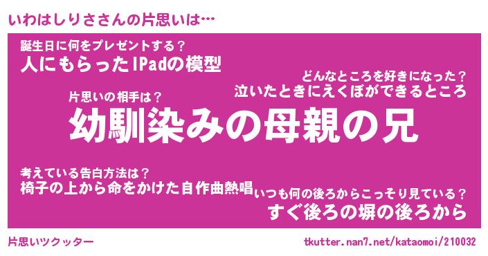 | ヘコむあだ名 | 『いわにー』『豆乳』『いわっちょ』 |