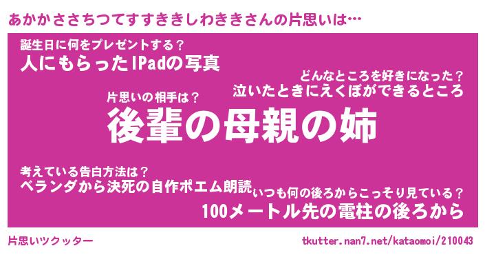 | ヘコむあだ名 | 『あかにー』『酢こんぶ』『あか太郎』 |
