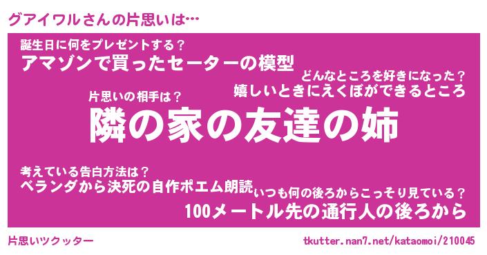| ファンタジー風あだ名 | 『グアフェル』『エターナルグアイワルー』 |