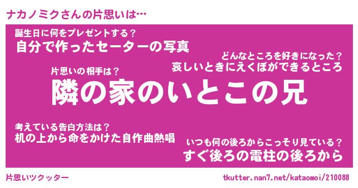 | ヘコむあだ名 | 『ナカもー』『つくし』『ナカぷりん』 |