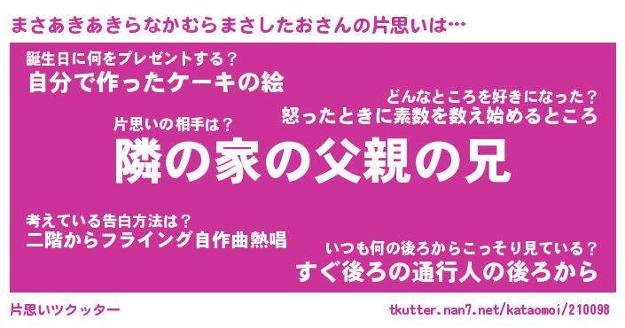 | 意味不明あだ名 | 『ペロリンまさあきあきらなかむらまさしたお』 |