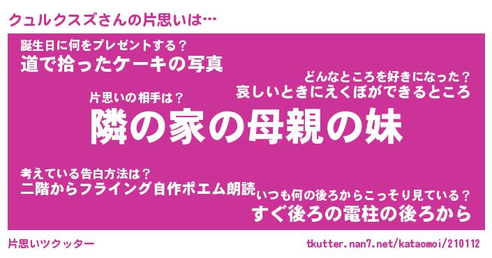 | ヘコむあだ名 | 『クュにー』『豆乳』『クュっ子』 |