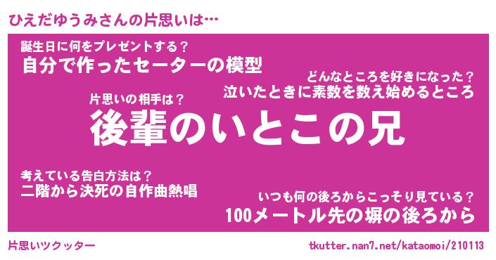 | 胡散臭い通販商品みたいなあだ名 | 『億万長者になれる水晶球…その名も「ひえだゆうみ」』 |