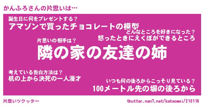 | 男性向けラノベタイトル風あだ名 | 『かんふろの憂鬱』 |
