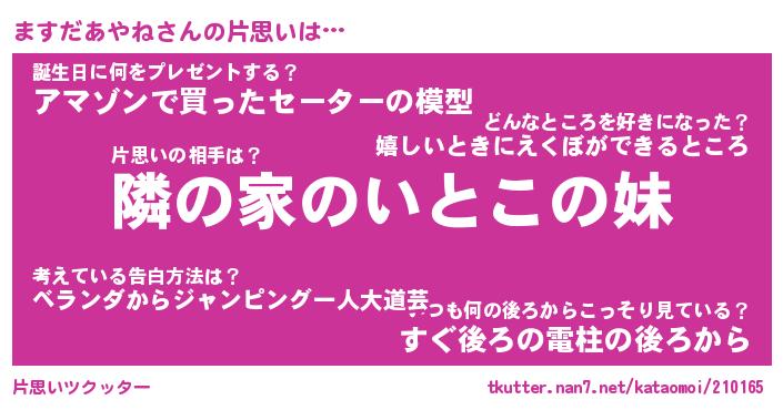 | 胡散臭い通販商品みたいなあだ名 | 『モテモテ間違いなし水晶球…その名も「ますだあやね」』 |