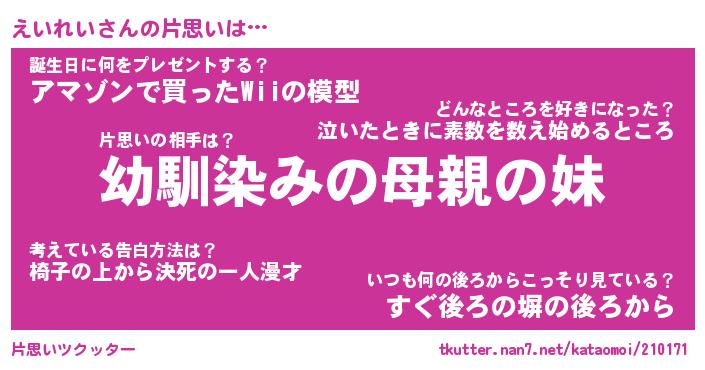 | ヘコむあだ名 | 『えいにー』『なまこ酢』『えいっぺ』 |